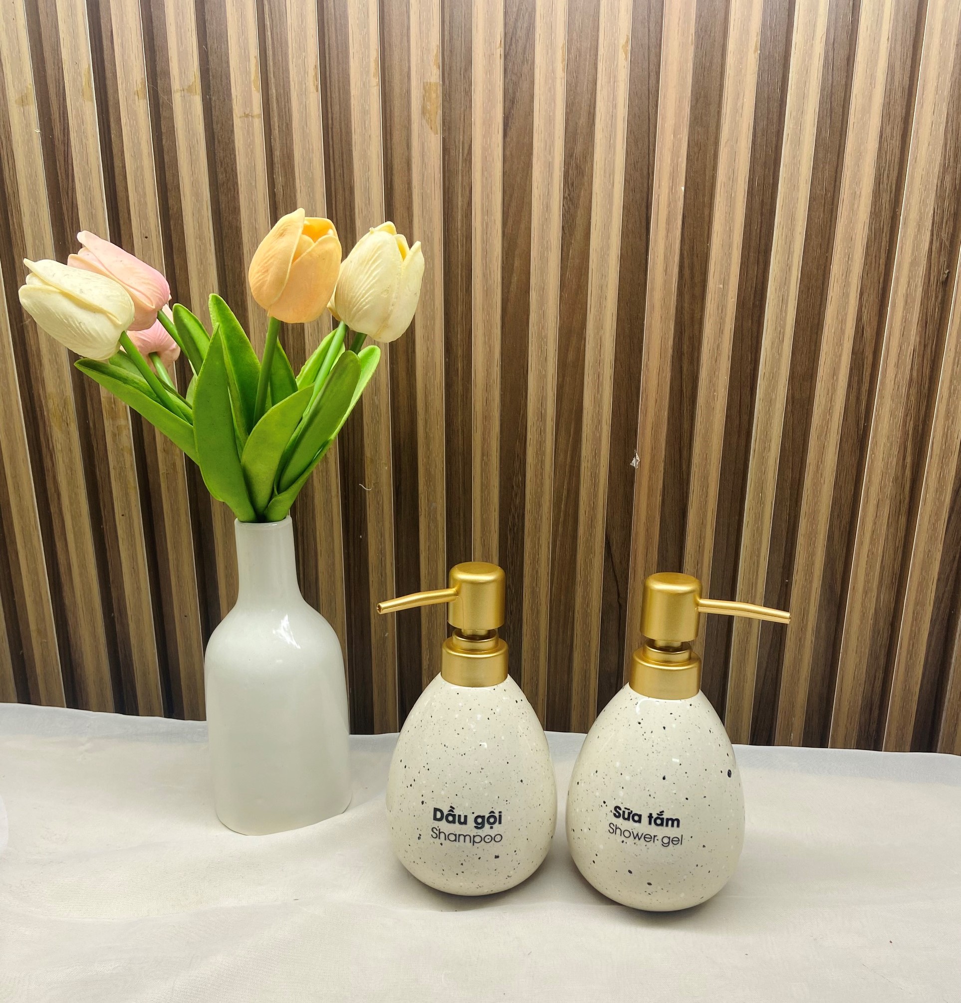 1. Bình sứ dầu gội/sữa tắm TT01 Kem