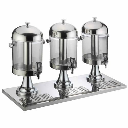 Bình đựng nước ép trái cây là một thiết bị không thể thiếu cho bất kỳ bữa tiệc Buffet nào. Bình này có thể phục vụ nước trái cây, trà chanh, bia tươi… mà không cần dùng đến bất kì thiết bị điện, tất cả đều an toàn kể cả trẻ nhỏ. Trước khi bắt đầu bữa tiệc, bạn chỉ cần chuẩn bị các bình nước trái cây ở những vị trí thích hợp. Thiết kế ống đựng đá viên ở giữa bình giúp giữ lạnh nước trái cây mà không cần cho thêm đá, sẽ giúp cho thức uống của bạn không bị nhạt vị và nguyên vẹn.