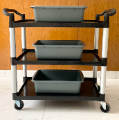 Xe phục vụ 3 tầng đen L-010B-2 (3 thau xám) Kích thước: 1020*490*980mm Chất liệu: nhựa cao cấp Nhãn hiệu: Elec Horeca